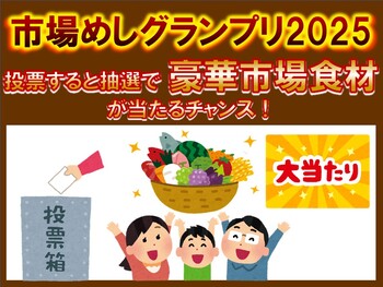 来場者の方々の投票で最も美味しかった店舗が決まる「市場めしグランプリ」を実施します。