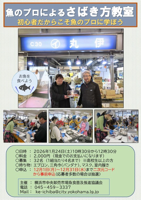 2026年 | 魚のプロによる | 横浜市電子申請システム(外部サイト)から申込 ※応募者多数の場合は、抽選となります。 ※抽選の結果は、連絡いたします。 |