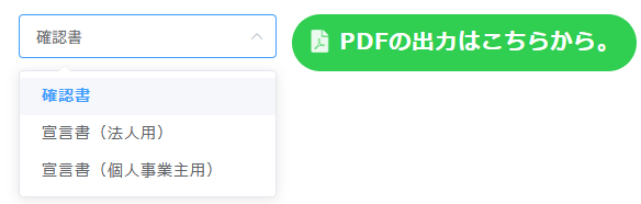 宣言時に届いた自動返信メールに記載されている<宣言内容の修正はこちら>のURLを開き、画面内の「PDFの出力はこちら」から、宣言書・確認書をダウンロードおよび保存してください。