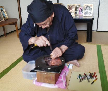 市内の小中学校に数多く招かれ、卒業記念製作の銅板画指導を行い、「他の人から受けた恩を忘れてはいけない」、「自分を育ててくれた人に対する感謝の気持ちと向上心をもつことが大切だ」と子供達に語りかけています。