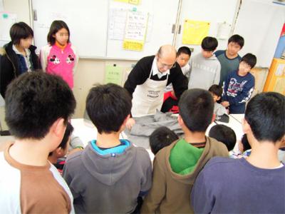 また、地域の小学校などでアイロンの仕上げ実習を行う活動をしています。