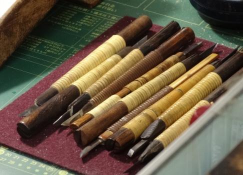 「彫る技能は回数を重ねれば上達しますが、字の線の太さやデザイン、バランスを磨くには、全体を見る俯瞰力と小さな世界を拡大できる想像力が必要」と言われます。