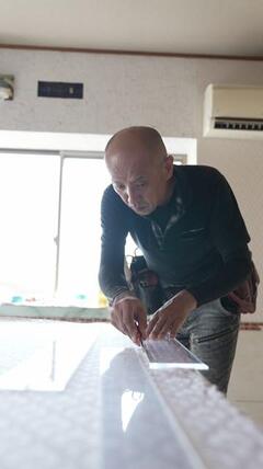 高校卒業後、不動産仲介業の会社員時代に、現場で壁紙を貼る仕事に興味を持つ。平成8年から約4年間の修行の後、一人親方として独立し、令和3年に株式会社サンユウを設立。