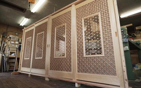 現代では建具製作も機械化が進んでいますが、腰型仕口のように手加工でしかできない技法もあることから、手加工の技能も大切にしています。手加工の技能が試される技能グランプリには平成29年から出場を重ねており、また、長期の製作期間を要する全国建具展示会にも平成17年から出品をしているなど技能の研鑽に努めています。