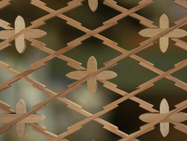 中抜き組子入りガラス戸「角麻の葉に松皮とんぼ」