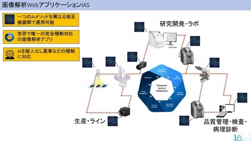 概要 | 研究開発や生産用途の画像解析アプリである。あらゆるフォーマットに対応できることにより、AIの擬人化や異なる機器間のAIの相互利用、画像解析ソフトとして初の医薬品におけるCSVやPart11等海外の規定に完全対応する。