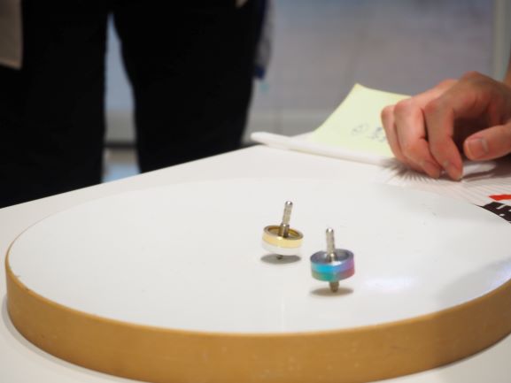 ものづくりのプロが先生となり、精度の良い部品を使ったコマを組み立て対戦します。