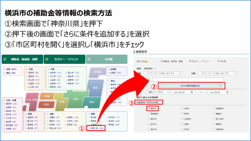 国・県・市の補助金等の情報