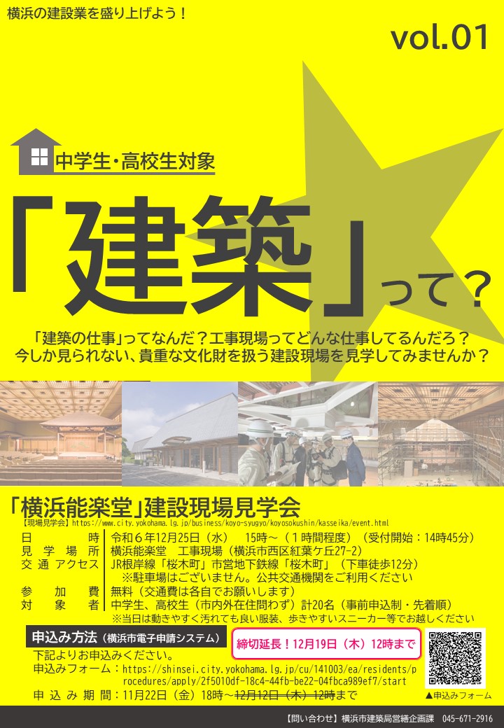 『横浜能楽堂 建設現場見学会』は中学生・高校生が対象です。