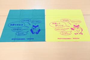 私たちが身に着けているバンダナは、「支援してほしい人」が黄色、「支援できる人」が緑として、地域防災拠点の中でバンダナを目印にコミュニケーションが取れるようになっています。