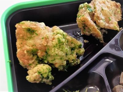 最後にいただいたのは、人気メニューの定番「からあげ」。ただの「からあげ」ではなく、「超ノリノリからあげ」と名付けられ、旬の食材(試食時は2月)である、青のりがふんだんに使用されています。名前の通り、気分があがると同時に、豊かな風味と季節を感じることもできる一品です。