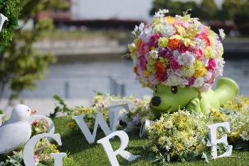 新港中央広場から赤レンガ方面に少し歩くと、象の鼻パークがあります。ここには、ガーデンネックレス横浜のマスコットキャラクター「ガーデンベア」と一緒に記念撮影できる、フォトスポットが設置されています。