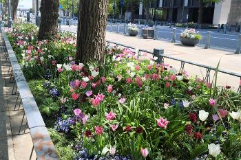 次に向かった見どころスポットは、日本大通り。歴史的建造物やオープンカフェの並ぶ美しい街並みが、多種多様な品種のチューリップによって彩られています。横浜港へと続く開放感あふれる通りを、普段よりもつい颯爽と歩いてしまいました。
