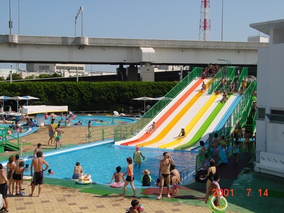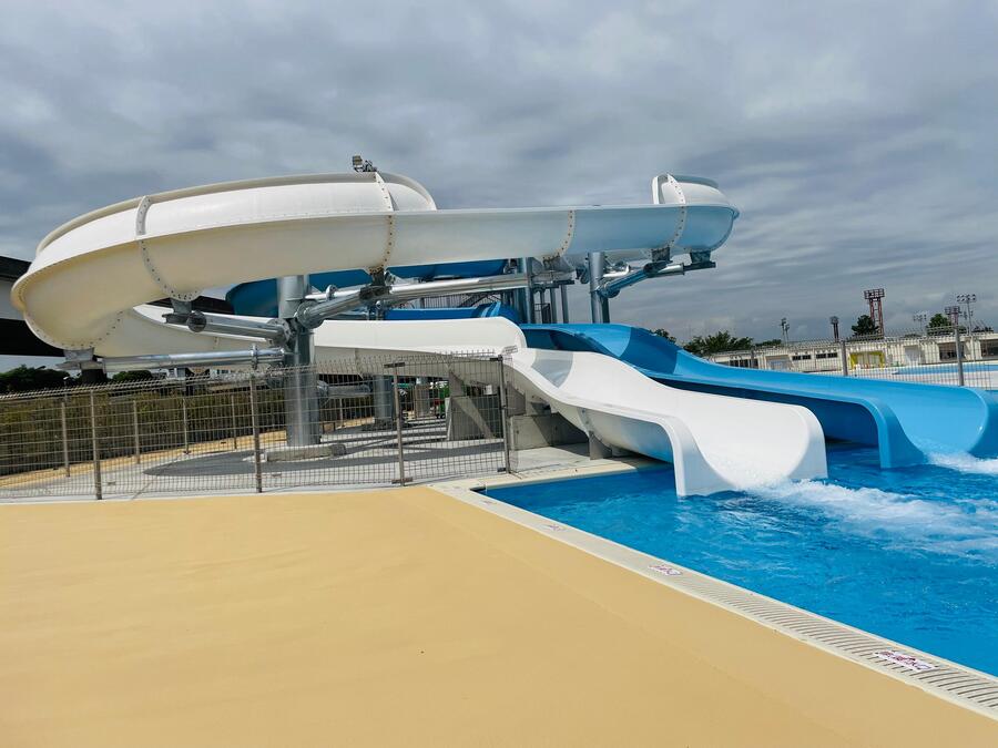 当時の市民プールでは、カラフルなウォータースライダーも子ども達に大人気でした。リニューアル後は、全長約40mあるウォータースライダーが楽しめます。高さも約5.5mもあり、圧巻の迫力です。