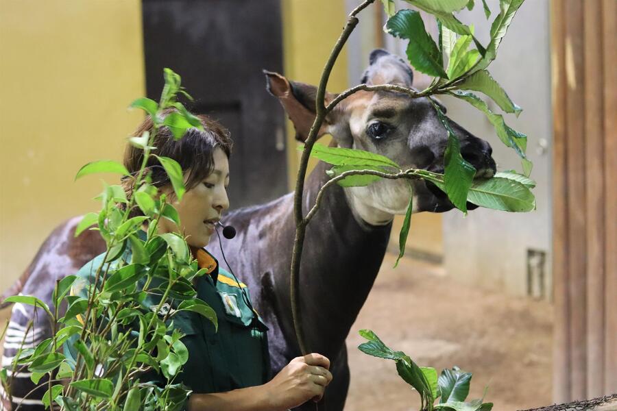 今年の2月には1頭が念願の出産をしましたが、残念ながら死産となりました。繁殖センターと連携し、オカピの糞からホルモン値を調べるなどの取り組みを行いながら、引き続き繁殖に向けた活動をしていくとのことです。