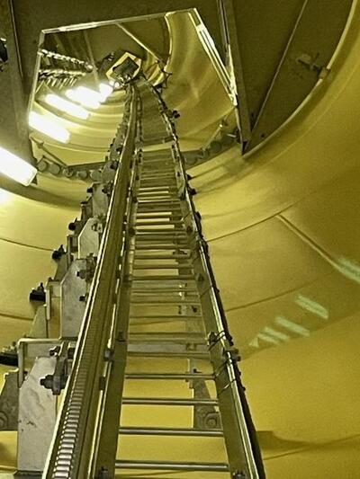 いよいよハマウィングの内部へ。内部にはハマウィングを制御するための装置や、点検の際ナセルに上るためのはしごやエレベーターが設置されていました。