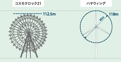 ハマウィングは、全国でも珍しい都市型立地の風力発電所です。