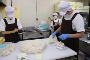 パン職人(職業指導員)さんのアドバイスを受けながら、みんなそれぞれ自分の持ち場で、パンと向き合います。