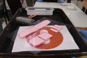 ベーコンを均一に切り分けるための見本や、ピザ生地を同じ大きさに広げるための見本
