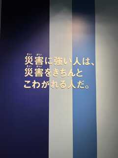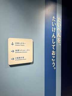 実際に防災センター行ってみて様々な「気づき」がありました。例えば、入口横の壁に色々なコメントがあります。その1番目にある「たいへんをたいけんしておこう」から最後の「災害に強い人は災害をきちんとこわがれる人だ」など、この施設の役割を簡潔にまとめた内容になっており、印象に残りました。