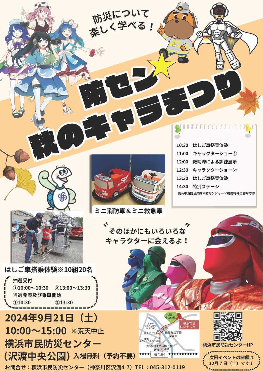 9月21日(土曜日)に横浜市民防災センターで防災イベントを開催します。その名も「防セン☆秋のキャラまつり」