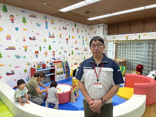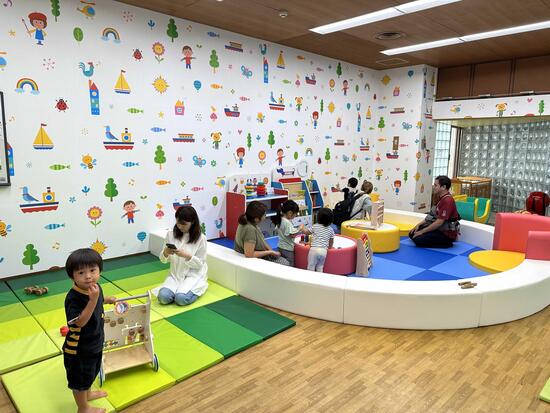 プレイルームの色は、区内の保育園の子どもたちに投票してもらい、「ポップで楽しい空間」をイメージし決定しました。定期的に「子育て支援の会」も開催しており、保護者の方への様々な情報発信の場にもしていきたいです。」