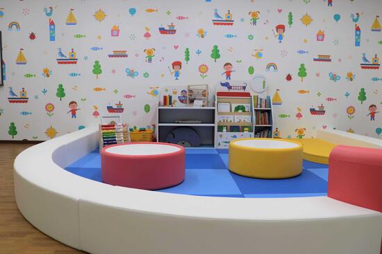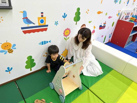 「リニューアルしたプレイルームは、「赤ちゃんが泣き止む」と話題の絵本、「もいもい」の作者である、横浜市ゆかりの絵本作家「市原 淳」さんプロデュースによる横浜をイメージした絵本コーナーがあり、絵本の中にいるかのような楽しい気持ちにさせてくれる空間になっています。また、0歳から2歳の子どもも楽しめる知育玩具を新たに用意しました。