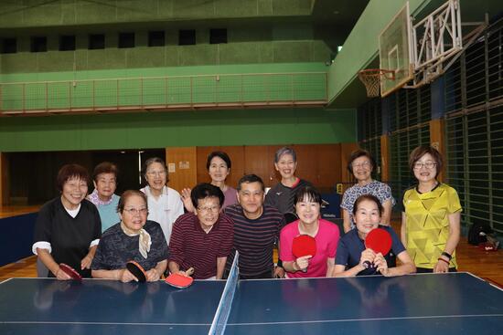 定期的に利用されている「晴嵐卓球チェリーの会」では、専属コーチが、1人1人のプレーをみながら、フォーム指導をされていました。皆さん熱心にコーチの指導に聞き入り、習った技術を繰り返し練習するなど、真剣にプレーしていました。体育館はそんな皆さんの熱気と、明るい会話と笑顔でいっぱい。体を動かす事の爽快感と仲間との触れ合いの楽しさが、やり甲斐に繋がっていることを感じました。