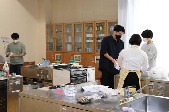 この日は、横浜市立大学の学生さんが、大学祭で出店するメニューを試作されていました。国際商学部吉永ゼミの皆さんは横浜の地元食材を使ったおにぎりやおかずの試作で利用し、たくさんある調理器具や設備が便利で使いやすいとのこと。「横浜育ちなので、地元食材のアピールができたら嬉しいです(笑)」と語ってくれました。