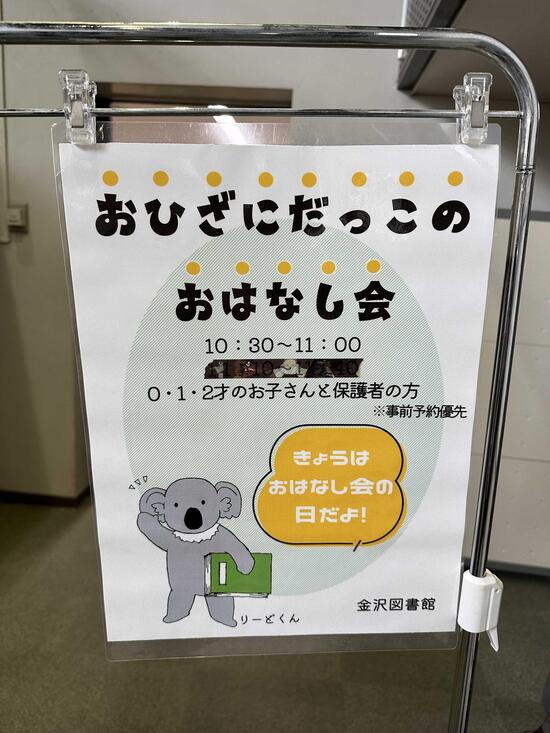 図書館と併設した地区センターも市内には5か所あります。金沢地区センターに併設する金沢図書館では、毎月、無料で0歳から2歳の子どもと保護者向けの読み聞かせイベント「おひざにだっこのおはなし会」を開催しています。わらべうたや絵本を小さなお子さんと一緒に楽しめるイベントです。1階児童書専用のフロアでは、「はじめてものがたり」や「りんごの棚」など、子ども向けの本を手に取りやすく工夫したコーナーがあります。また、定期的に「紙芝居まつり」「科学工作会」なども開催しています。