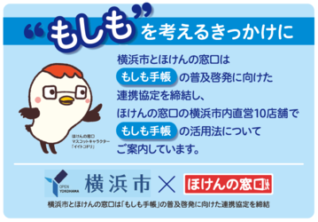 横浜市とほけんの窓口グループ株式会社は、「もしも手帳」の普及啓発に関する協定を締結し、当店でも昨年の8月から配布を開始しました。