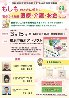 ※詳しくは、横浜市ホームページ:「在宅医療を推進するための市民啓発講演会」のページをご覧ください。