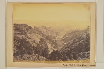英語で「"Fusi Yama"(富士山)への道」というキャプションがついています。横浜の郊外の風景のようですが、撮影ポイントはよくわかっていません。江戸時代の横浜市域は大部分、このような光景がひろがっていました。どこで撮られたかわかる方はいらっしゃいますか?