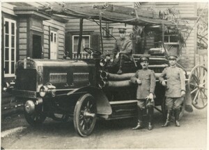 現在、横浜市消防局では、消防車、救急車、ヘリコプター、消防艇など約600台を市内に配備しています。消防車の歴史を辿っていくと、1914(大正3)年に、外国人居留地消防が、英国製のガソリンポンプ自動車を輸入し、薩摩町消防組(現在の中区)に配置したのが最初でした。諸説ありますが、これが日本初の消防車と言われています。