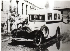 また、横浜は救急発祥の地でもあります。1933(昭和8)年に、山下消防署において、日本初となる救急車が配置され、その年から救急事務が開始されました。画像は初代の救急車で、キャデラックを改造した車両でした。