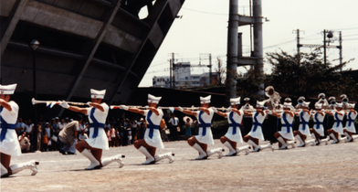 ポートエンジェルス119は、当時、男性隊員のみで構成していた音楽隊に、編成の充実と演技の幅の拡大を図るため、全国の消防音楽隊にさきがけて、1982(昭和57)年に14名の女性隊員を採用し「演奏もできる女性ドリルチーム」として発足しました。