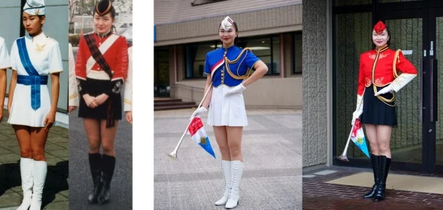 【左】結成時(1982年)と【右】現在のパレード服
