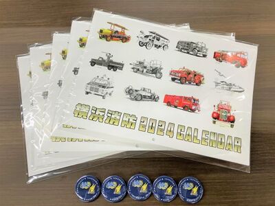 いつも『広報よこはま』・「よこはま彩発見」をご覧いただき、ありがとうございます。感想をお寄せいただいた方の中から抽選で、「横浜消防2024カレンダー」と缶バッチのセットを5名様にプレゼントします。ご希望の方は、次の6項目※を明記し、郵便はがき(〒231-0005 横浜市中区本町6-50-10 横浜市役所政策局広報課 あて)又は電子メール(ss-saihakken@city.yokohama.lg.jp)でご応募ください。締切は2024年1月31日(水曜日) 必着です。