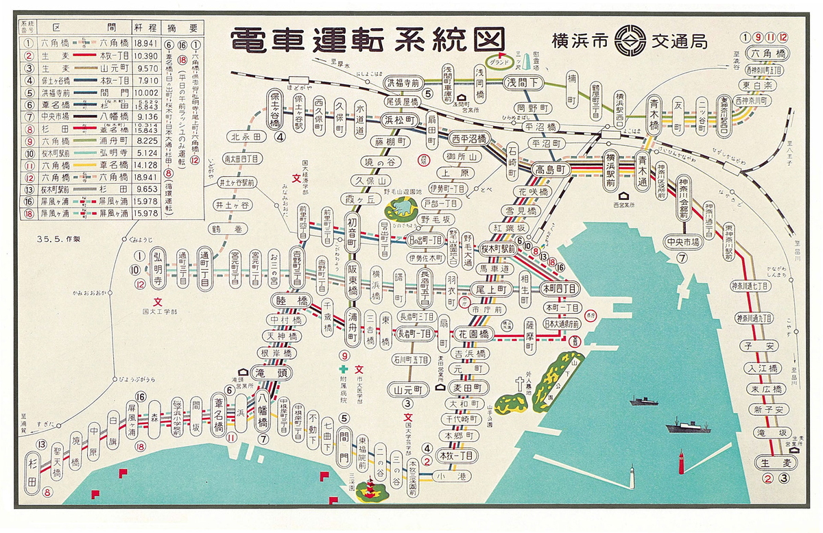 横浜市電は、「ちんちん電車」の愛称で親しまれ、市民の足として活躍、震災・戦争を乗り越えて、昭和30年代には路線の総距離は51.79km、1日30万人の乗客数と、規模の上では最盛期を迎えます。