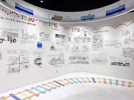 また壁面には、市電の時代からバス・地下鉄の時代までをイラストと文章で表現した年表が展示されています。