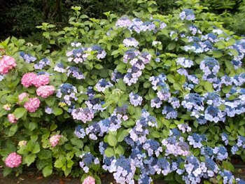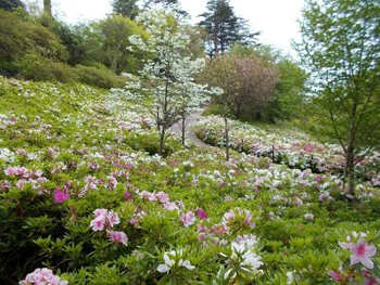 また、新緑の頃には「つつじ園」のツツジが、梅雨時期には「あじさい園」のアジサイが、それぞれ河岸段丘の傾斜地に植栽されているため、立体的な花園となります。