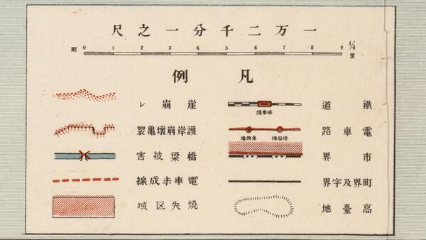 【画像5】「横浜大地図・附大正十二年大震火災区域」より凡例 岡崎保・安岡健四郎 1923(大正12)年 横浜開港資料館蔵