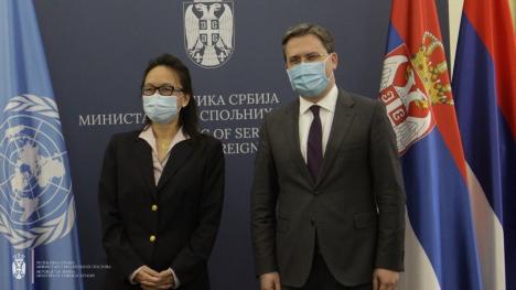 2021年4月 ニコラ・セラコビッチ・セルビア共和国外相との会談終了後(於:セルビア外務省)(左側が講師の山下様)