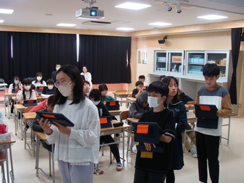 初めにみなとみらい本町小学校が横浜市で開催されたアジア・スマートシティ会議という国際会議の中で校歌「いろとりどりの未来」を発表する動画が共有されました。歌詞には地球環境が改善され、皆がもっと幸せに暮らせるようにという願いが込められています。ウランバートルの生徒からは「とても前向きな内容で感動しました」、「美しい地球を残していきたいという気持ちが反映された良い歌だと思います」など親しみのこもったコメントが寄せられました。