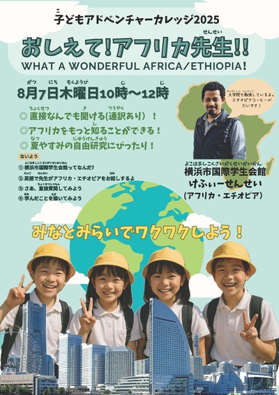 ③「おしえて!アフリカ先生!!~What a wonderful Africa/Ethiopia!~」(横浜市国際学生会館)(募集は終了しました)