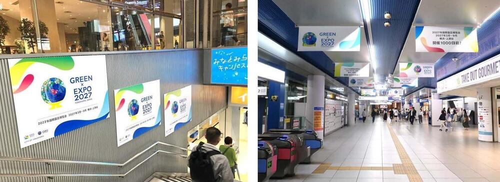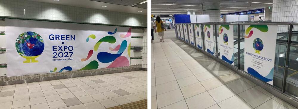 また、開催1000日前を契機に、公式ロゴマークをモチーフにしたサブグラフィックとマスコットキャラクター等を組み合わせた新たなデザインにより、横浜の街を彩り、「GREEN×EXPO 2027」のさらなる機運の醸成を図りました。