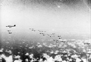 - B29を援護するP51戦闘機の編隊