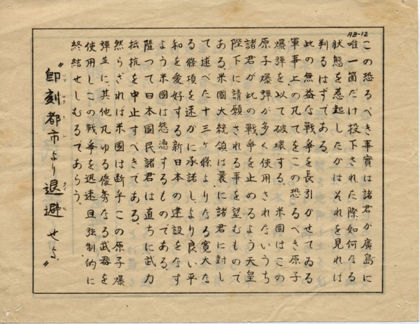 昭和20年2月以降、米軍機から大量に投下された宣伝ビラ。脅威や日本の早期降伏を勧告する内容だった。