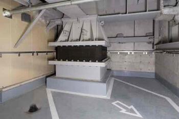 市庁舎の2階と3階の間に免震装置を設置し、免震層上部の揺れを低減させるとともに、制振装置により地震エネルギーを吸収させることで、執務室の什器転倒などの被害を防ぎ、業務の継続性を確保します。