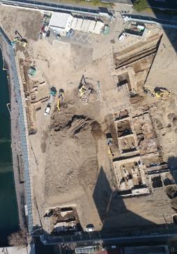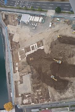 発掘調査に先立ち、新市庁舎整備予定地のほぼ全面(約13,500平方メートル)に渡って表層部の舗装材や工作物等の